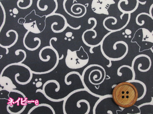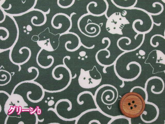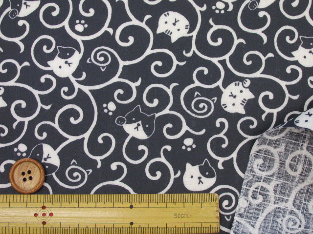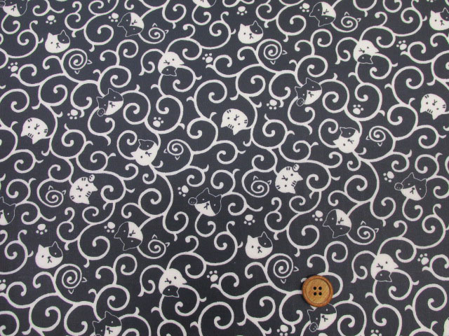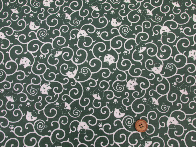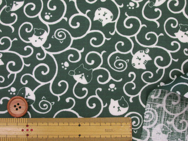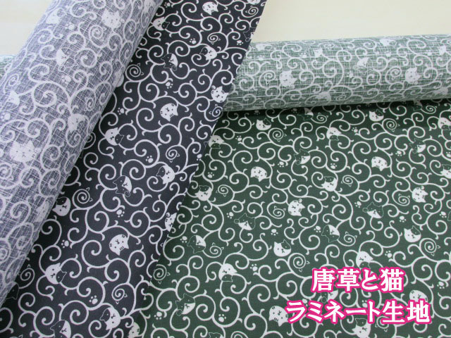 和柄 唐草模様と猫 ネコ・唐草柄 ドビー生地 ラミネート つや消し コスモテキスタイル