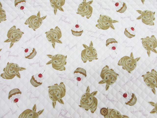 ウサギとカップケーキ うさぎ・ケーキ・動物柄 オックス生地 全針キルト (生成り)