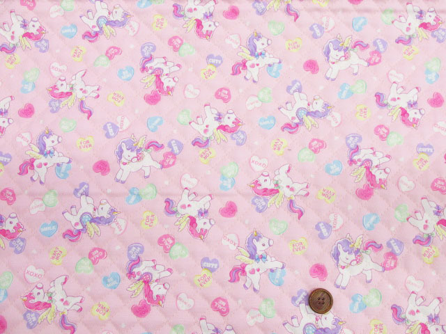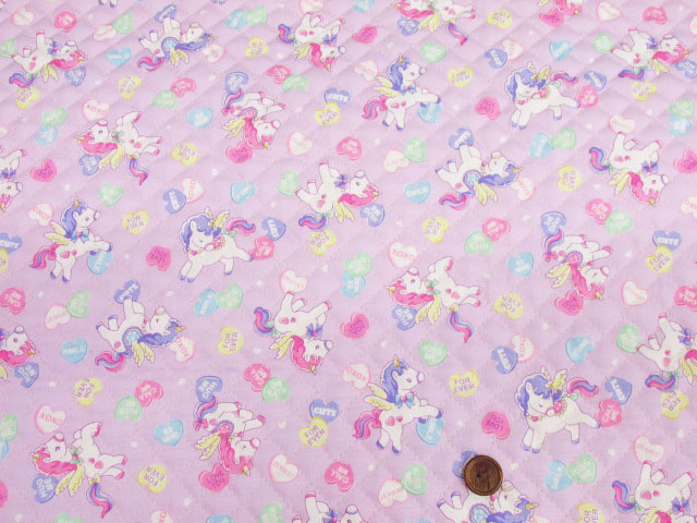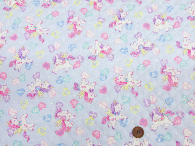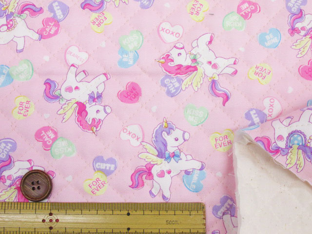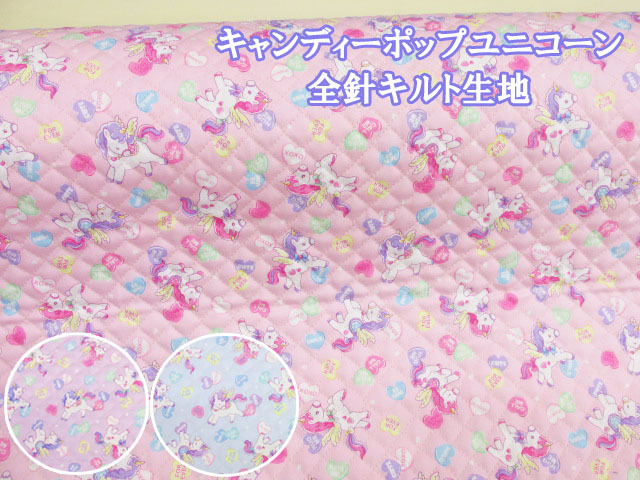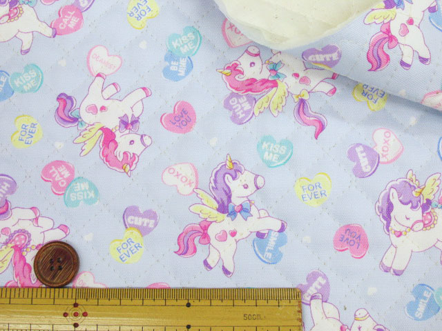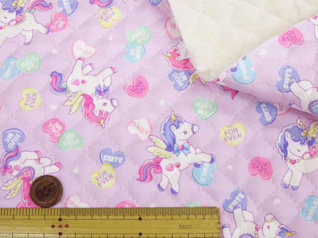ゆめかわ キャンディーポップユニコーン ユニコーン・ハート柄 オックス生地 全針キルト コスモテキスタイル