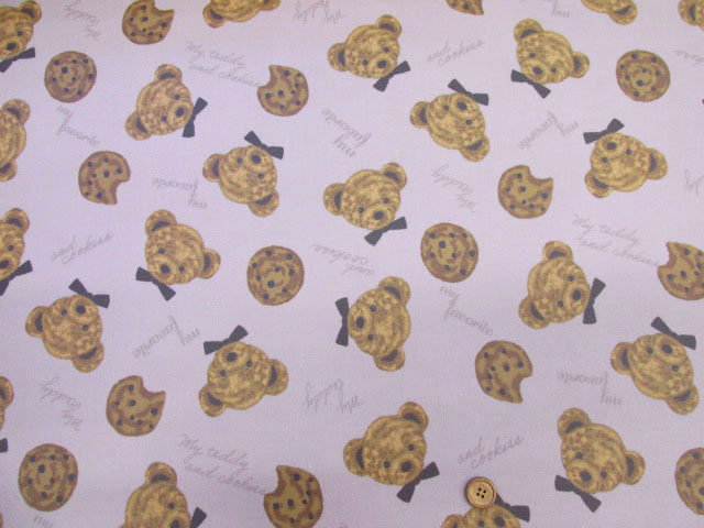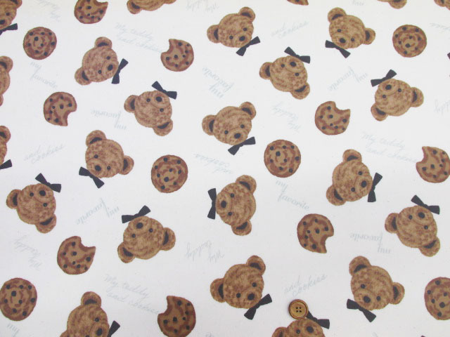 クマとクッキー くま・チョコチップクッキー・動物柄 オックス生地 ラミネート つや消し