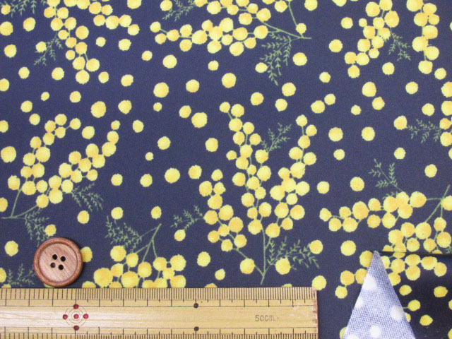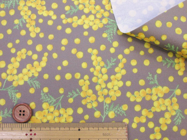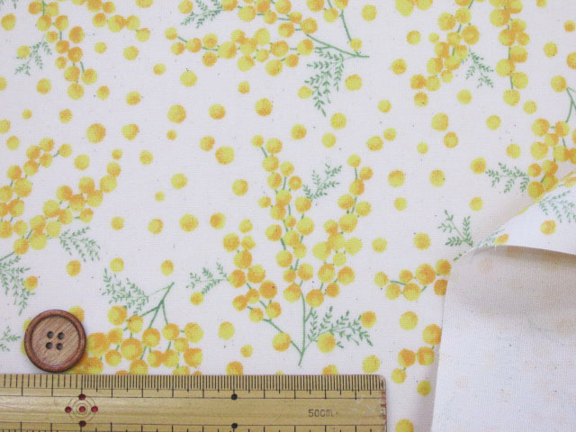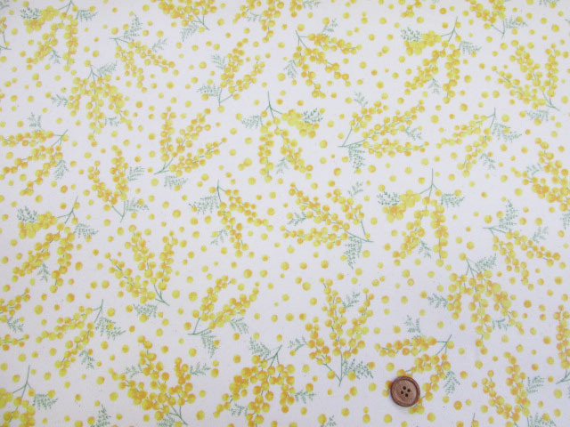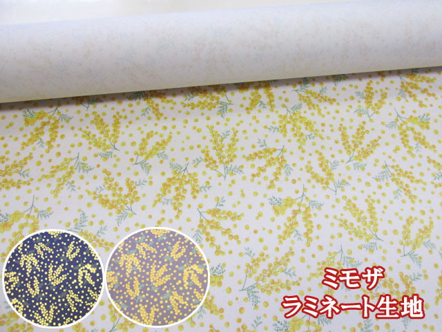 ミモザ 花・フラワー柄 オックス生地 ラミネート つや消し [lr9005-1]