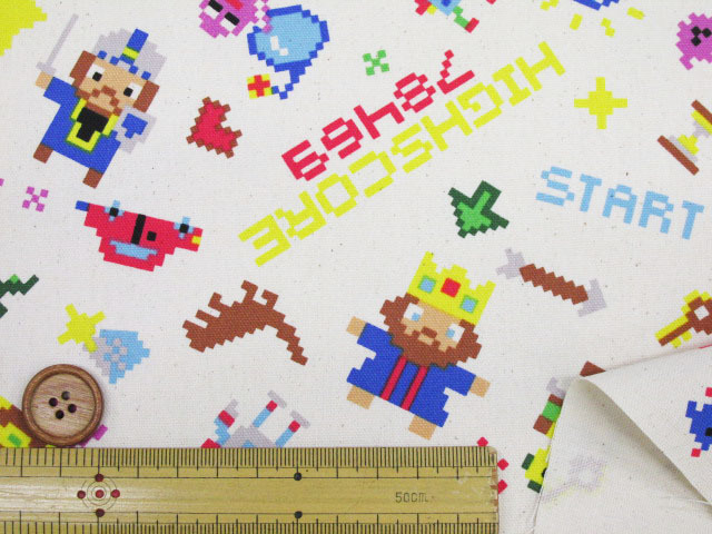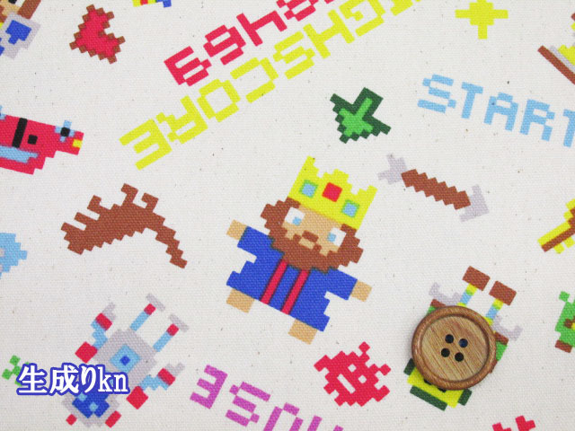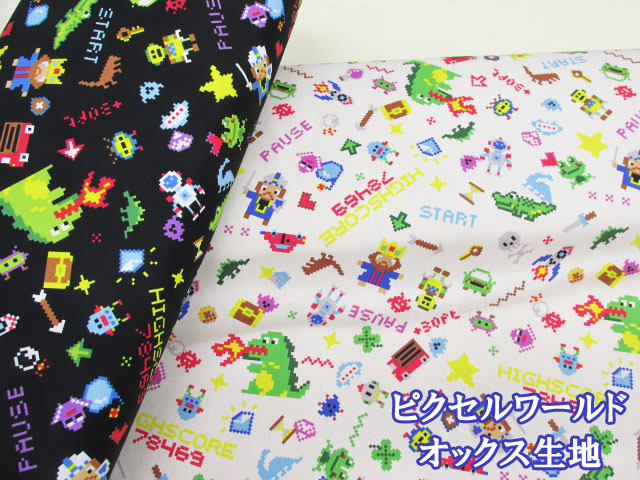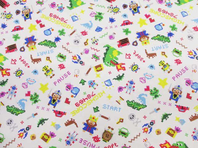 お気に入りシリーズ ピクセルワールド ゲーム 恐竜 ロボット 王様ドット柄 オックス生地 [mowf-167]
