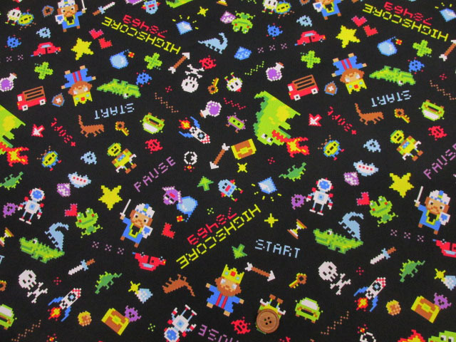 お気に入りシリーズ ピクセルワールド ゲーム 恐竜 ロボット 王様ドット柄 オックス生地