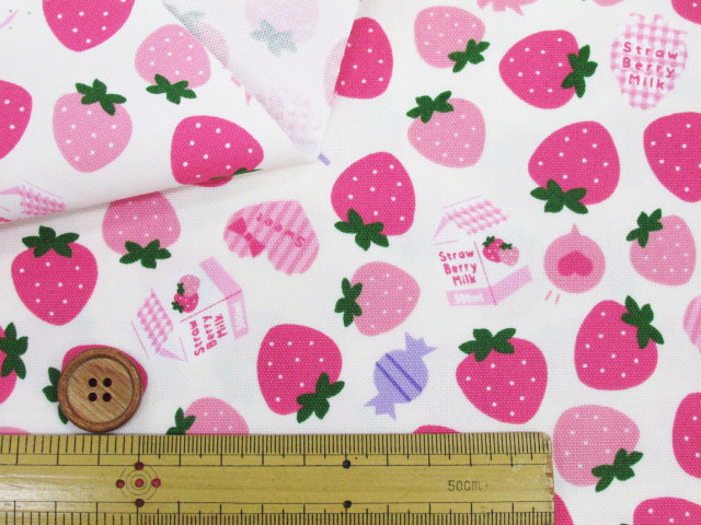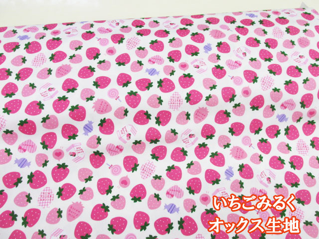 お気に入りシリーズ いちごみるく キャンディー 苺 イチゴ柄 オックス生地 [mowf-161ow]