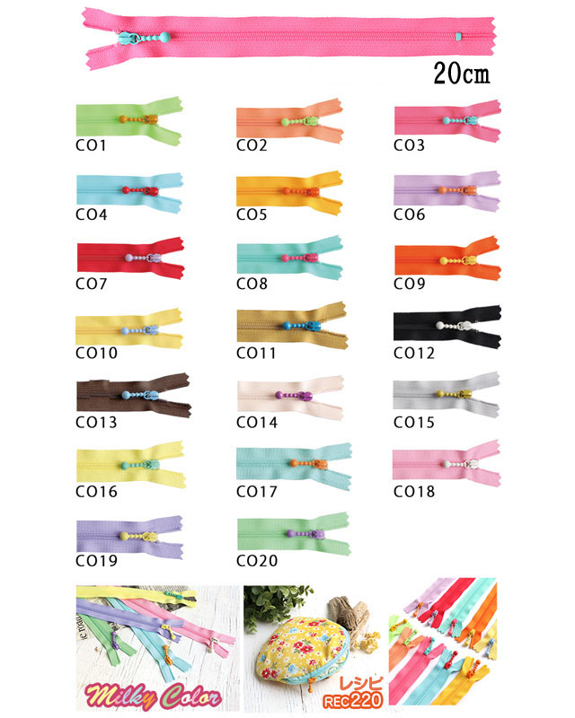定番人気♪ YKK カラフル玉付きファスナー【20cm】 計20色 [3cf20]