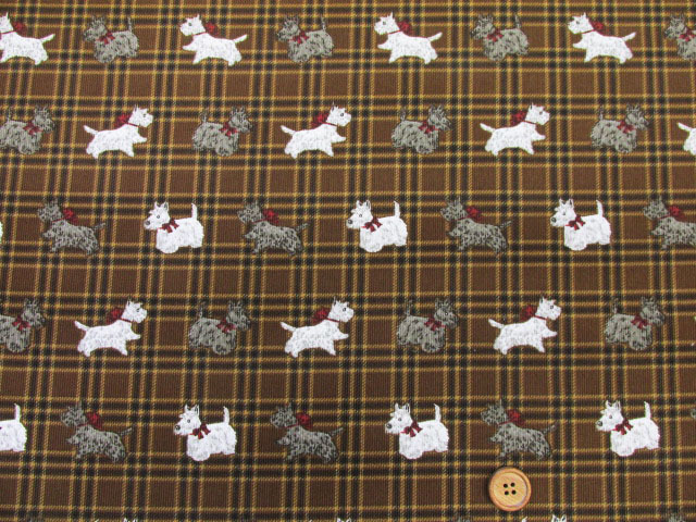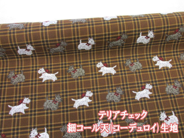 現品限り!! テリアチェック ヨークシャテリア ドッグ 犬柄 コール天 コーデュロイ生地