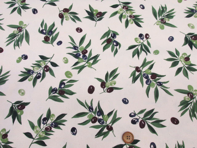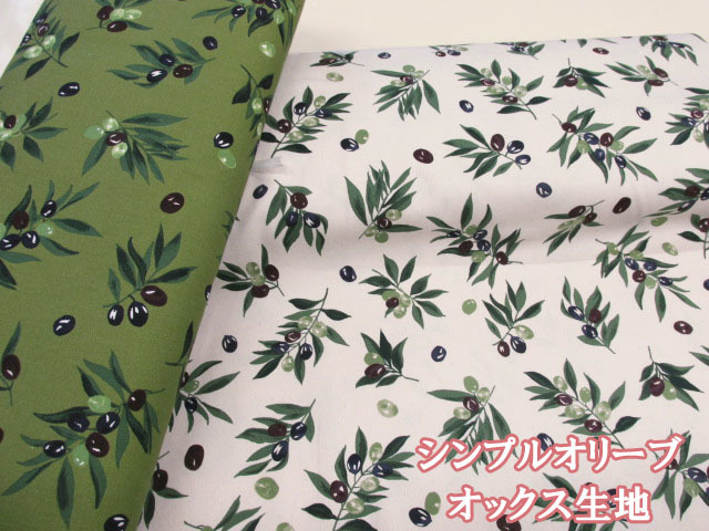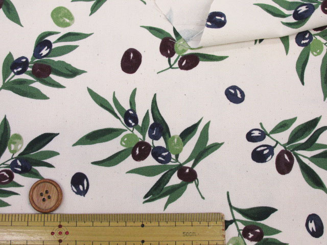シンプルオリーブ 木の実・オリーブ柄 オックス生地