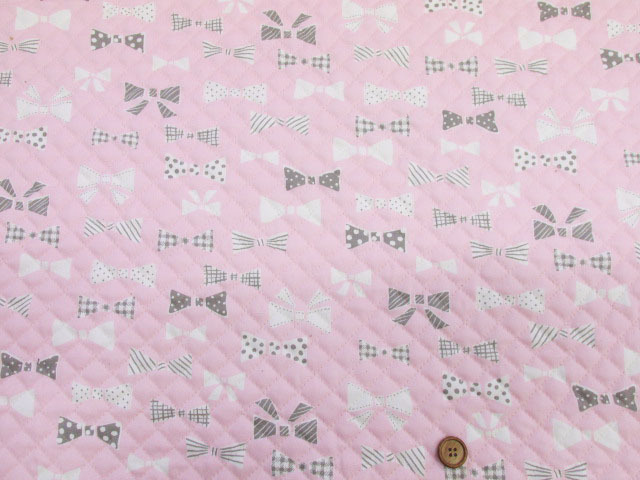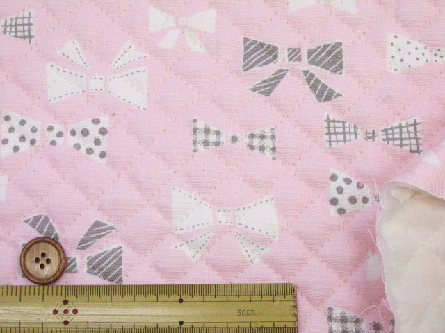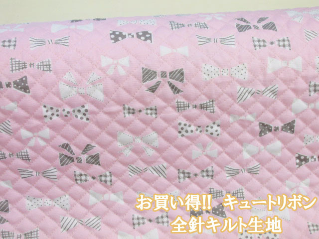 お気に入りシリーズ キュートリボン リボン柄 オックス生地 全針キルト (ピンク) [qmowf-160p]