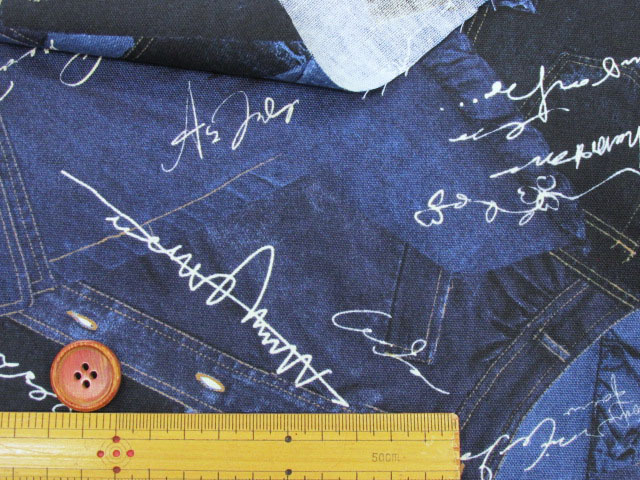 デニムパッチ英字 英字・デニム柄 オックス生地
