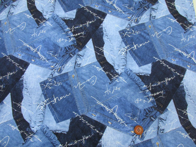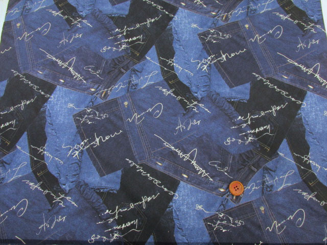 デニムパッチ英字 英字・デニム柄 オックス生地 [99411-1]