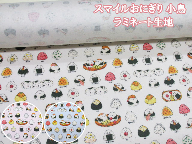 スマイルおにぎり 小鳥・シマエナガ・おむすび柄 オックス生地 ラミネート つや消し [lhsk811]