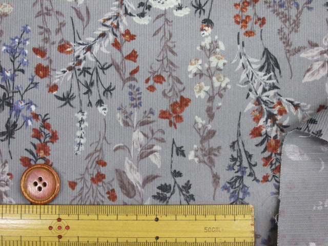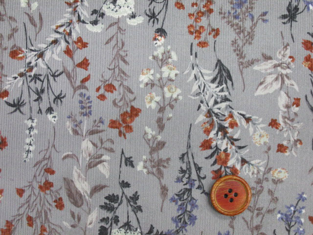21W 細コール天 ボタニカルガーデン フラワー・花柄 (グレー) コール天 コーデュロイ生地 HOKKOH [4021-1755-2b]
