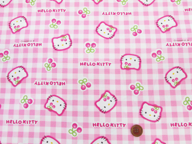 サンリオ ハローキティ チェリー・チェック柄 オックス生地 (ピンク)