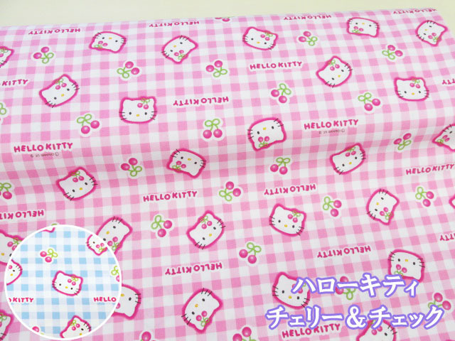 サンリオ ハローキティ チェリー・チェック柄 オックス生地 [ktcherry-8320]