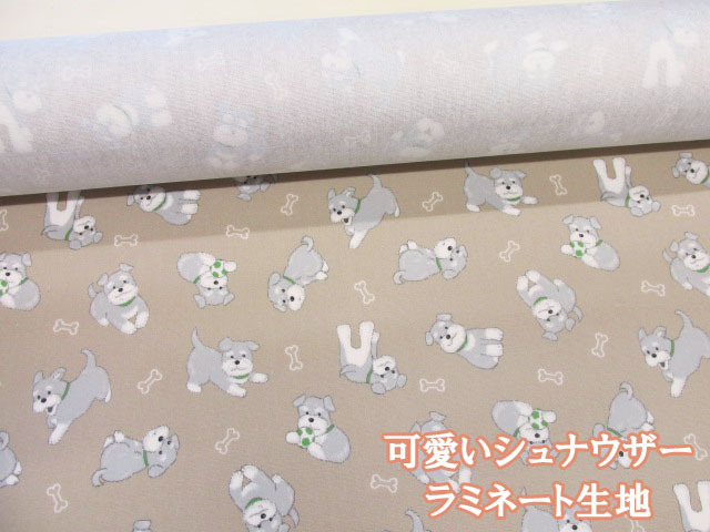 可愛いシュナウザー ワンコ・犬柄 オックス生地 (ベージュ) ラミネート つや消し コスモテキスタイル [lap61908-1e]