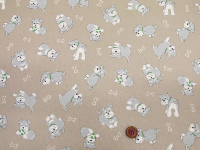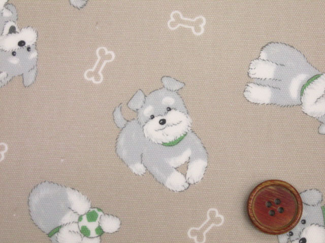 可愛いシュナウザー ワンコ・犬柄 オックス生地 (ベージュ) ラミネート つや消し コスモテキスタイル