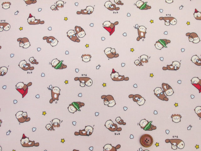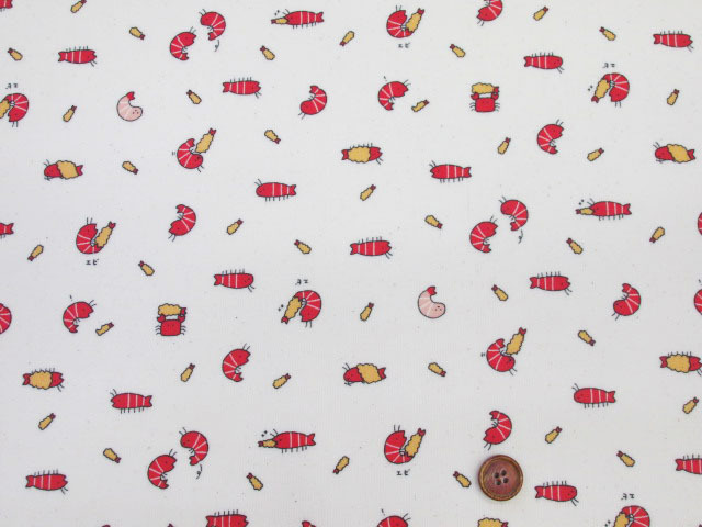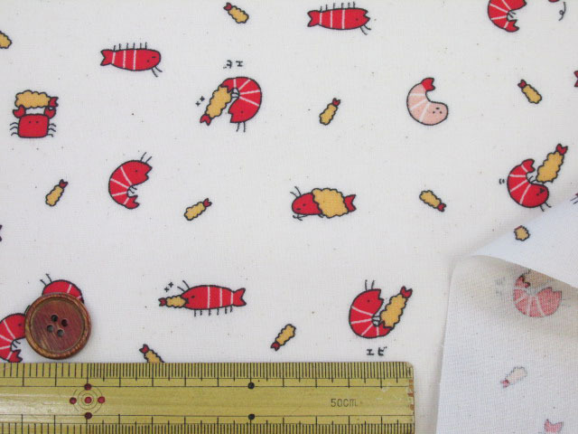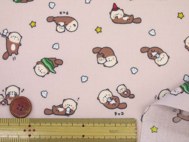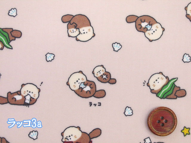 リトルアニマルワールド エビ・アザラシ・ラッコ・動物柄 シーチング生地 ラミネート つや消し コスモテキスタイル