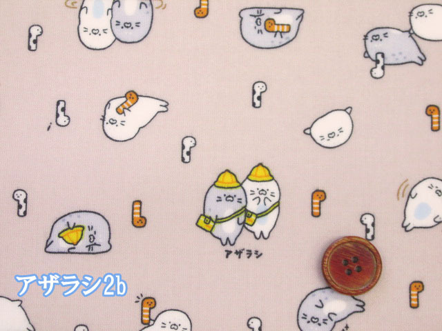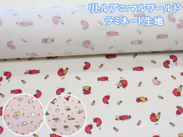 リトルアニマルワールド エビ・アザラシ・ラッコ・動物柄 シーチング生地 ラミネート つや消し コスモテキスタイル [lap61103]