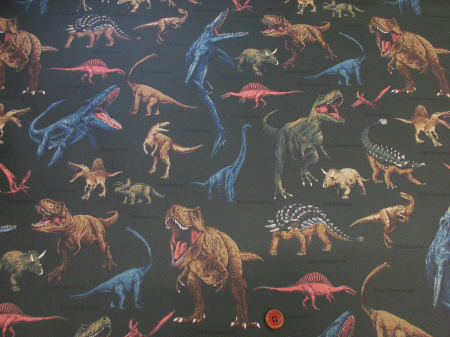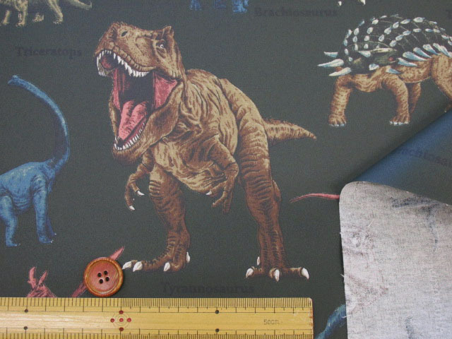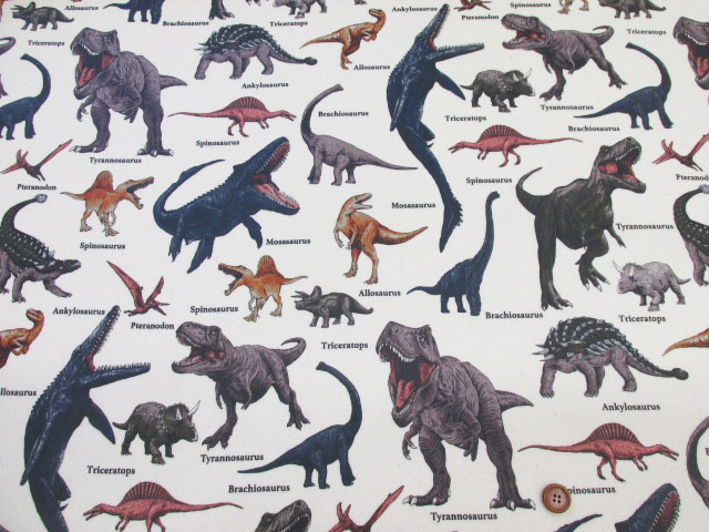 恐竜図鑑 ダイナソー・恐竜柄 オックス生地 ラミネート つや消し