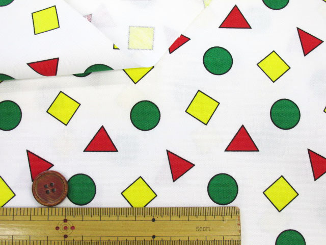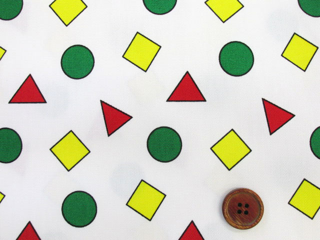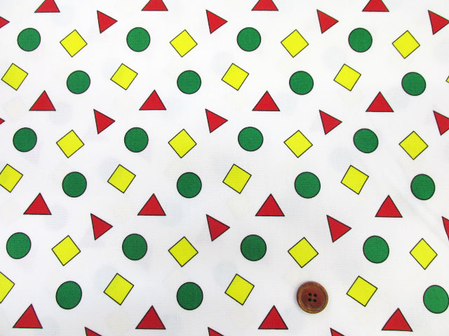 マルサンカクシカク 丸・三角・四角柄 オックス生地 (オフホワイト) [hsk810-a]