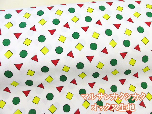 マルサンカクシカク 丸・三角・四角柄 オックス生地 (オフホワイト)