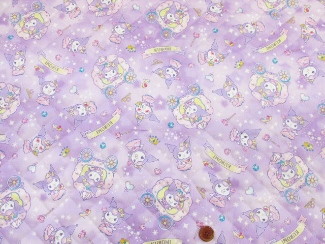 サンリオ クロミ プリンセス柄 オックス生地 (パープル) 半針キルト [qg8979-1a]