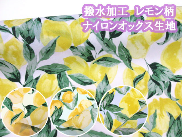 撥水加工 シンプルレモン れもん柄 ナイロンオックス生地