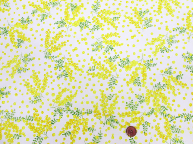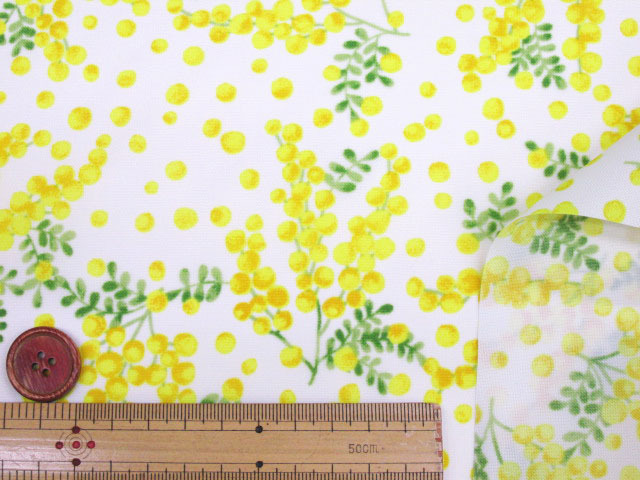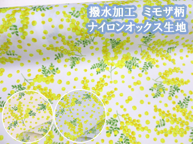 撥水加工 シンプルミモザ ミモザ柄 ナイロンオックス生地