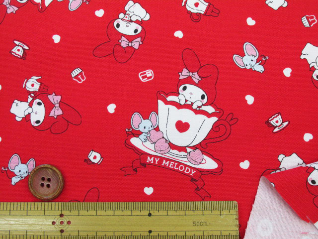 サンリオ マイメロディ ハート柄 オックス生地 (レッド) 半針キルト [qg8983-1a]