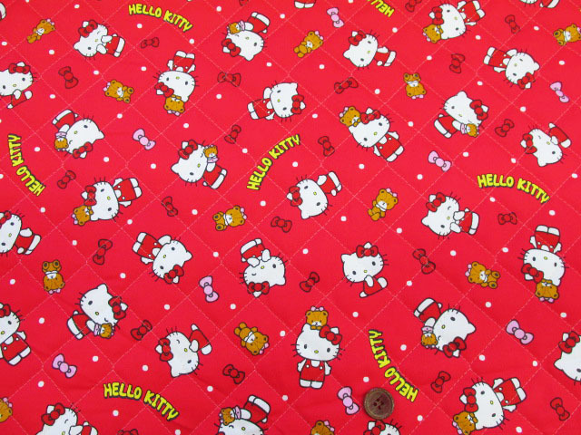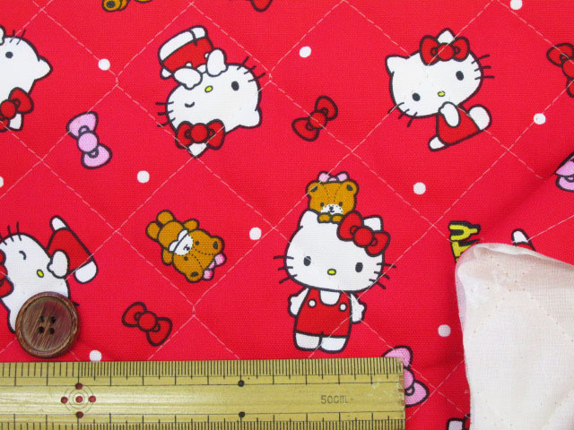 HELLO KITTY リボンドット柄 オックス生地 (レッド) 半針キルト [qg8982-1a]