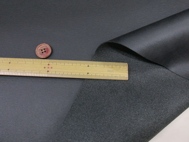 表面はわずかな光沢があり、厚みは約1mmですがコシとしなやかさがある扱いやすい合皮レザー生地です。