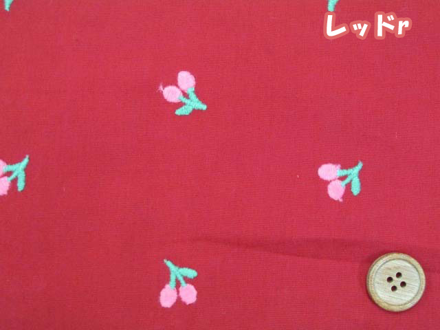 現品限りの20%オフ!! 可愛い!! 刺繍生地 チェリー柄 ソフトブロード生地 [genpin-kof-34]