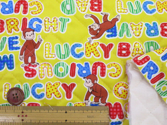 おさるのジョージ アルファベット柄 オックス生地 (イエロー) 半針キルト [w20cg-001r]