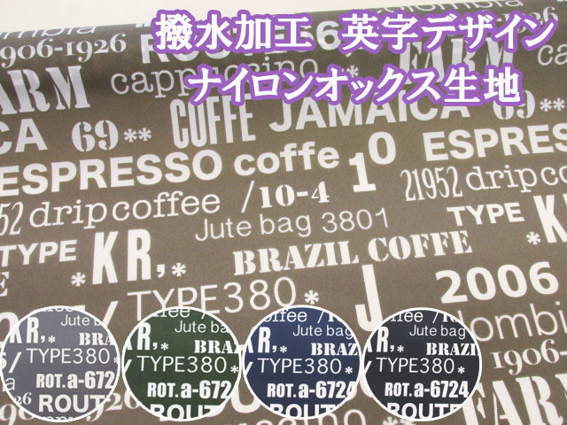 撥水加工 英字デザイン 英字・ロゴ柄 ナイロンオックス生地