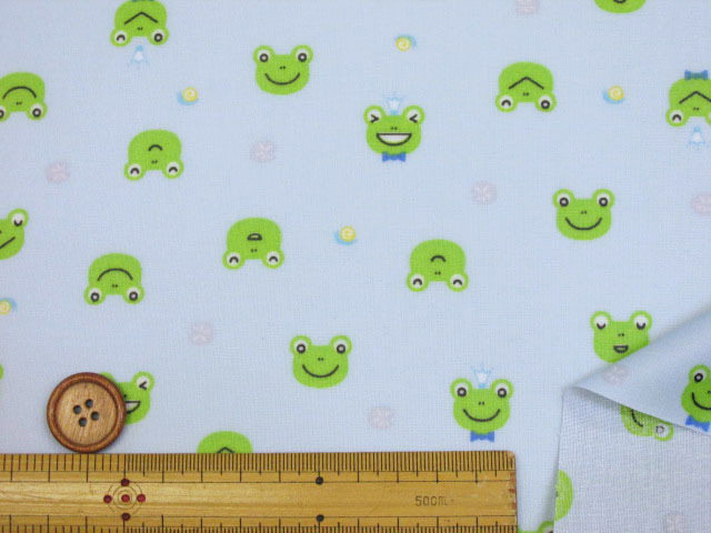 カエルの王様 カエル柄 シーチング生地 ラミネートはぎれ20cm↑(ブルー) [lhsk728@t]