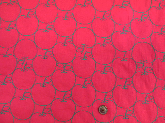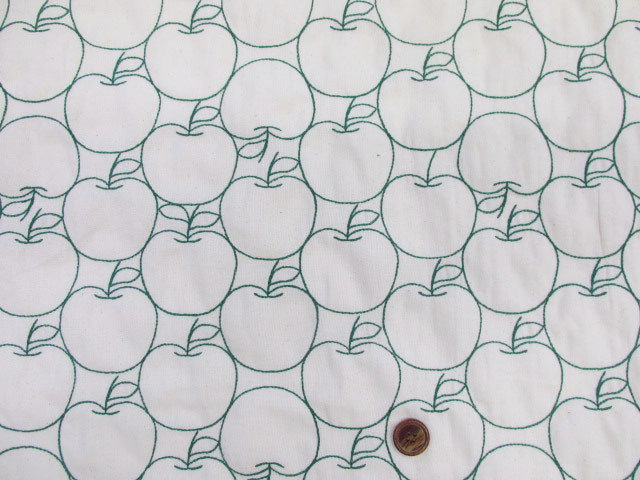 ころんと可愛いりんご柄が目を引く綿100% シーチング生地 りんご刺繍入りです。