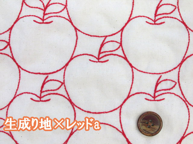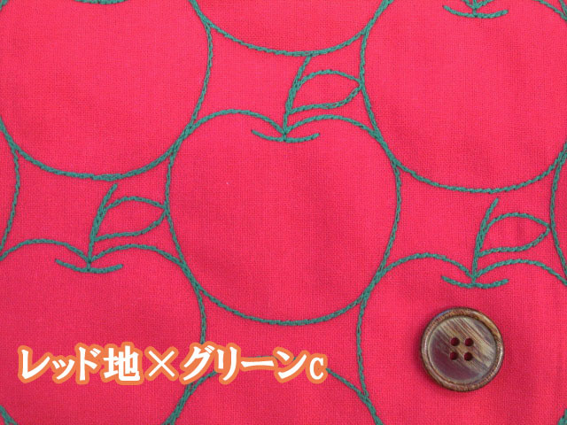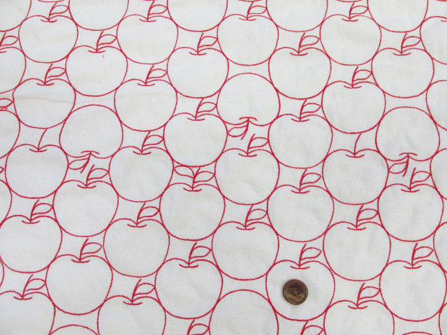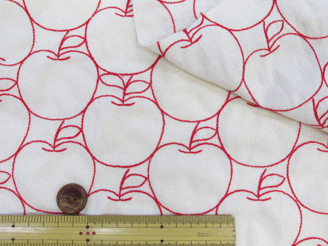 毎年完売の人気生地!! 刺繍幅約96cm アップル・りんご・林檎・リンゴ柄 シーチング生地 [hsk822]