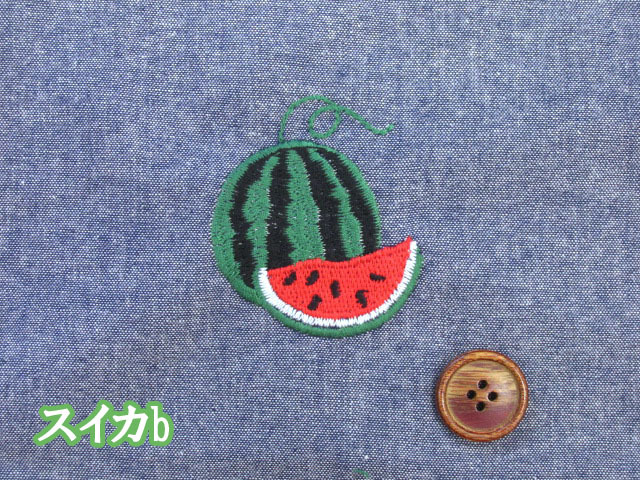 かわいい刺繍!! 刺繍幅約100cm ヒマワリ・スイカ・パイナップル 刺繍ダンガリー生地
