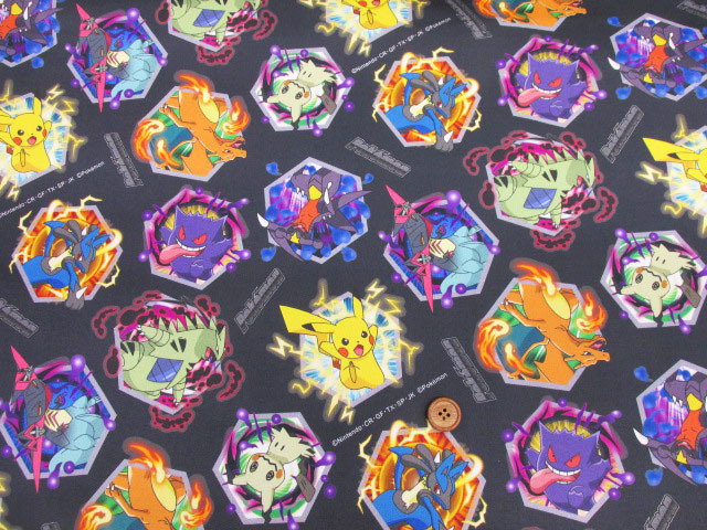 ポケットモンスター アタックエフェクト ポケモン柄 インクジェットプリント オックス生地(ダークグレー) [gij6135-1a]