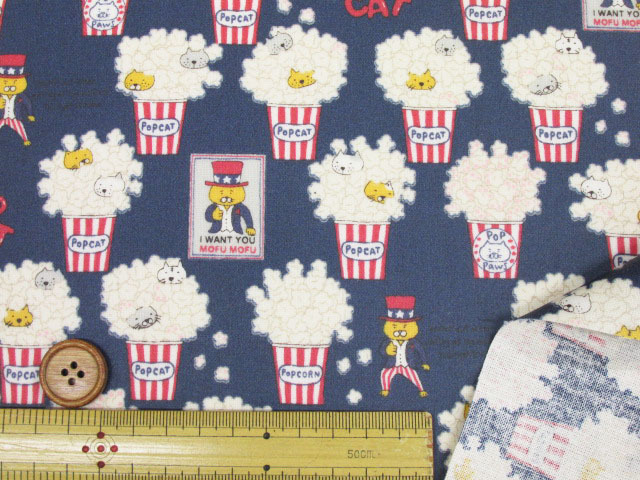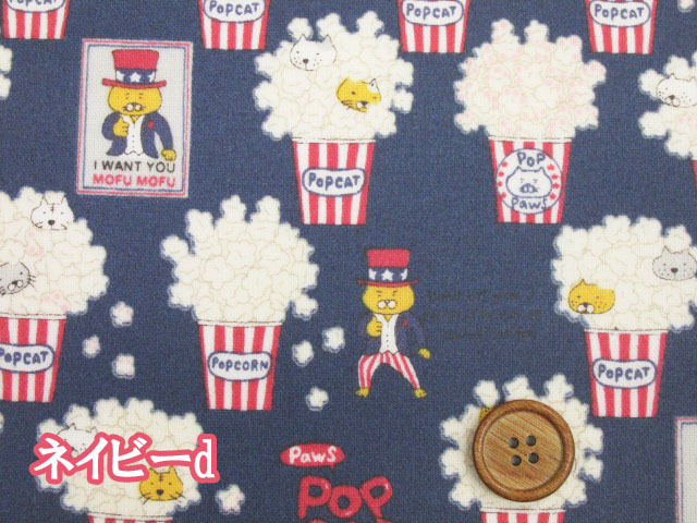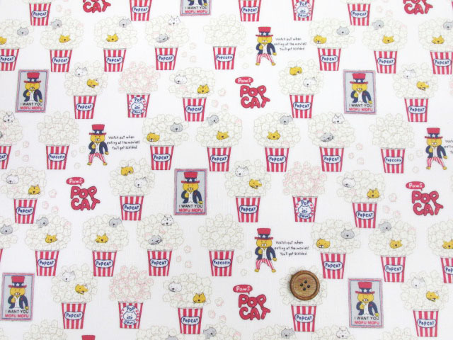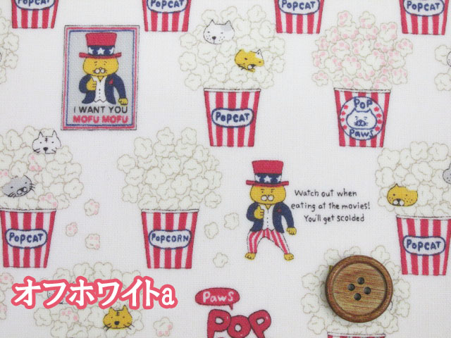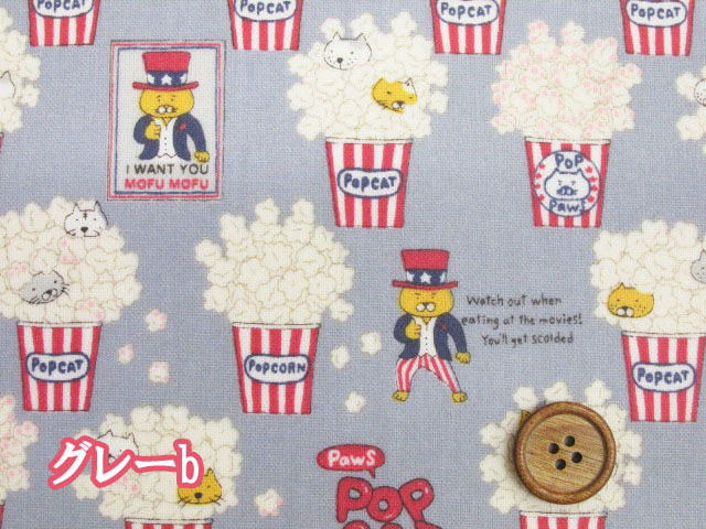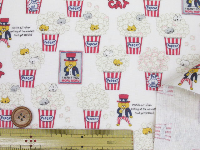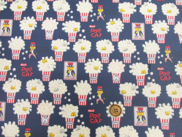 ポップコーンネコ ポップコーン・ネコ・猫柄 綿キャンバス生地 ラミネート つや消し コットンこばやし