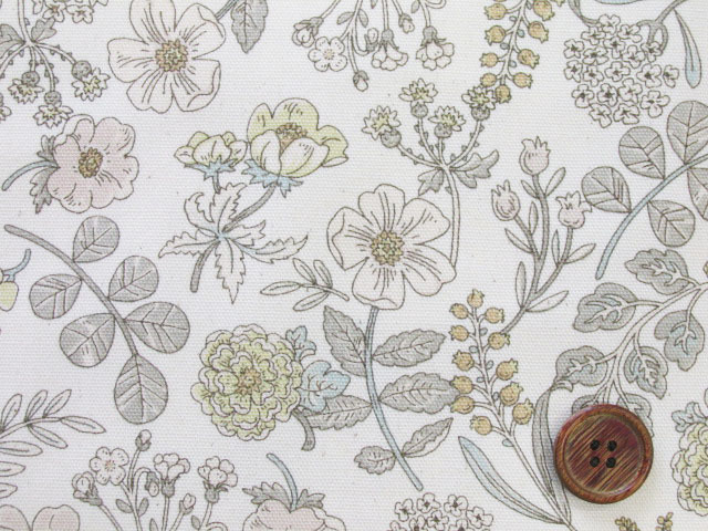 スモーキーボタニカル フラワー・花柄 オックス生地 (生成り)