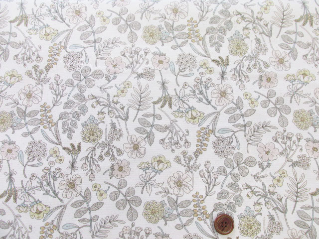 スモーキーボタニカル フラワー・花柄 オックス生地 (生成り) [yka31080-1a]