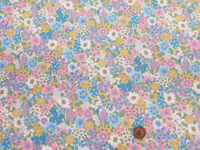 小花が一面に広がる華やかなデザインが魅力のスプリングフラワー柄 ブロード生地です。
