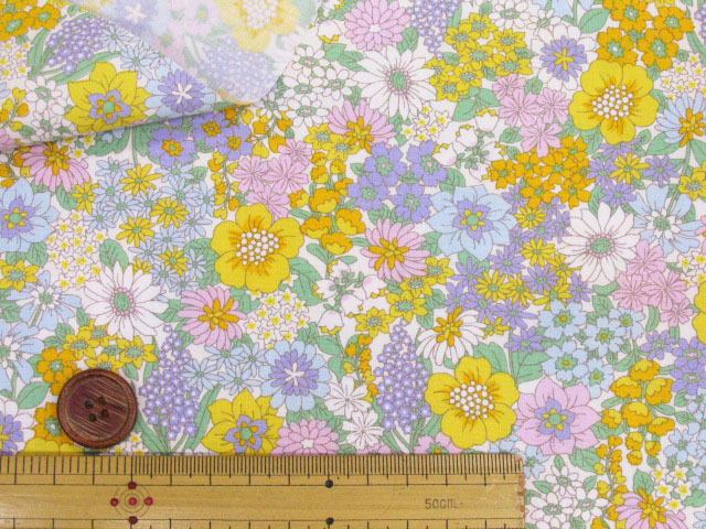 お子さまから大人向けまで幅広く使える、万能で可愛らしいフラワー生地です。