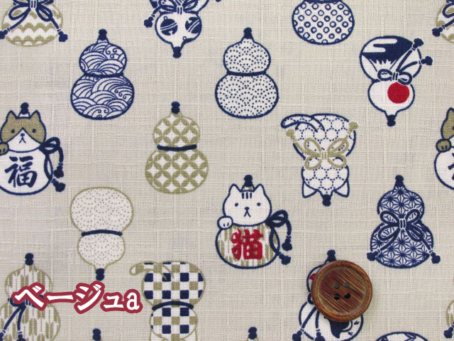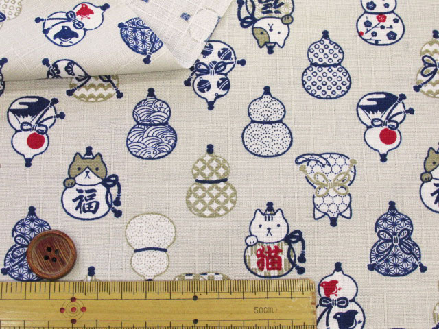 和の趣を感じる可愛らしいデザインが魅力のひょうたん猫柄 ドビー生地です。