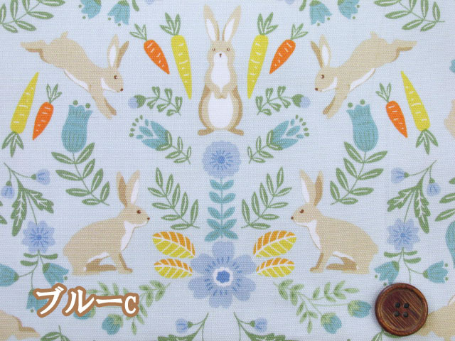 ボタニカルラビット フラワー・ウサギ・花柄 オックス生地