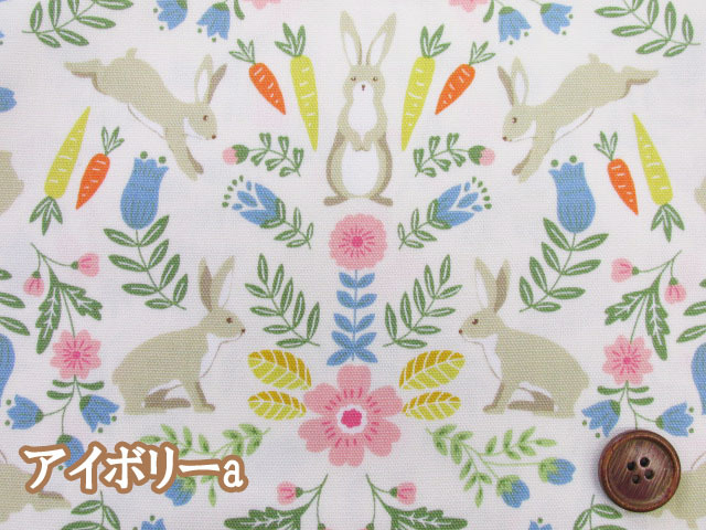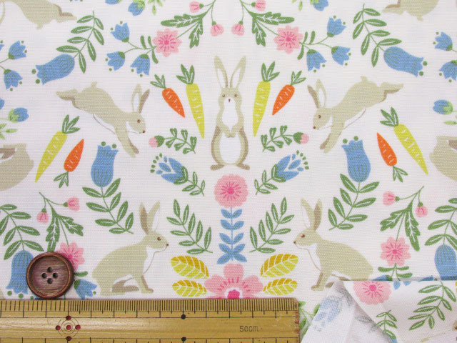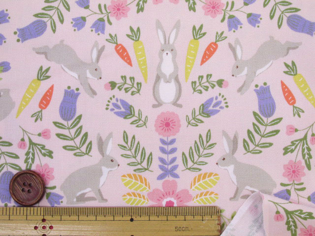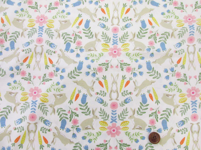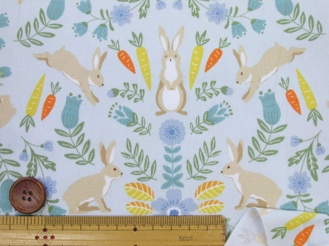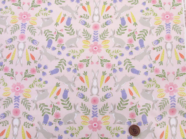 ナチュラルでやさしい世界観が広がるボタニカルラビット柄 オックス生地です。