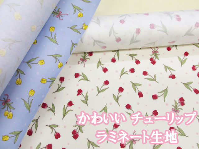 かわいい チューリップ フラワー・花柄 オックス生地 ラミネート つや消し コスモテキスタイル