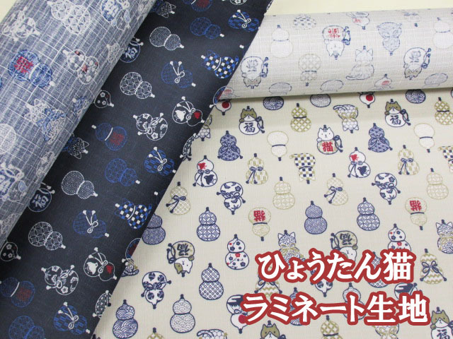 ひょうたん猫 ネコ・ねこ・和柄 ドビー生地 ラミネート つや消し