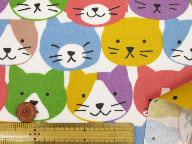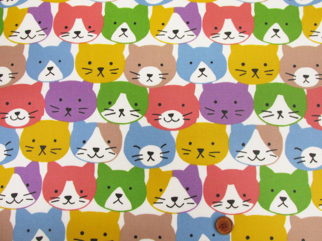 キャットフェイス ネコ・ねこ・猫柄 オックス生地 (カラフル) ラミネート つや消し [l3700-24a]